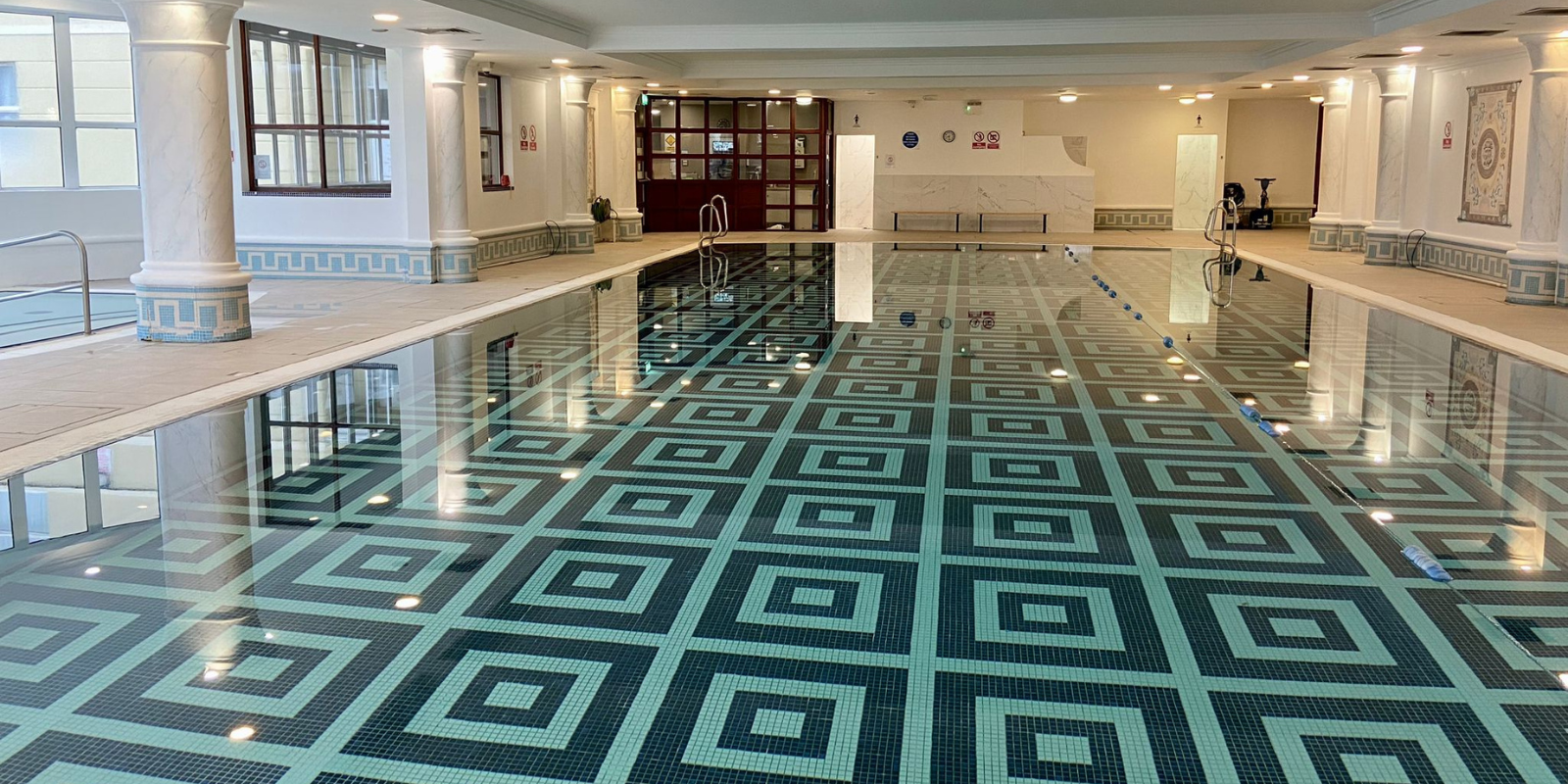 - Freizeitzentrum mit 20-Meter-Becken auf Beckenebene und Kinderbecken